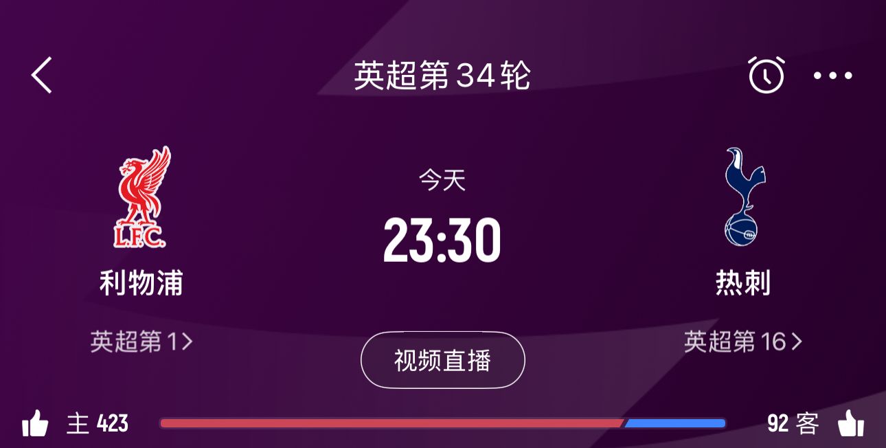 今夜見(jiàn)證紅軍加冕23:30利物浦主場(chǎng)戰熱刺 不敗即鎖定英超冠軍